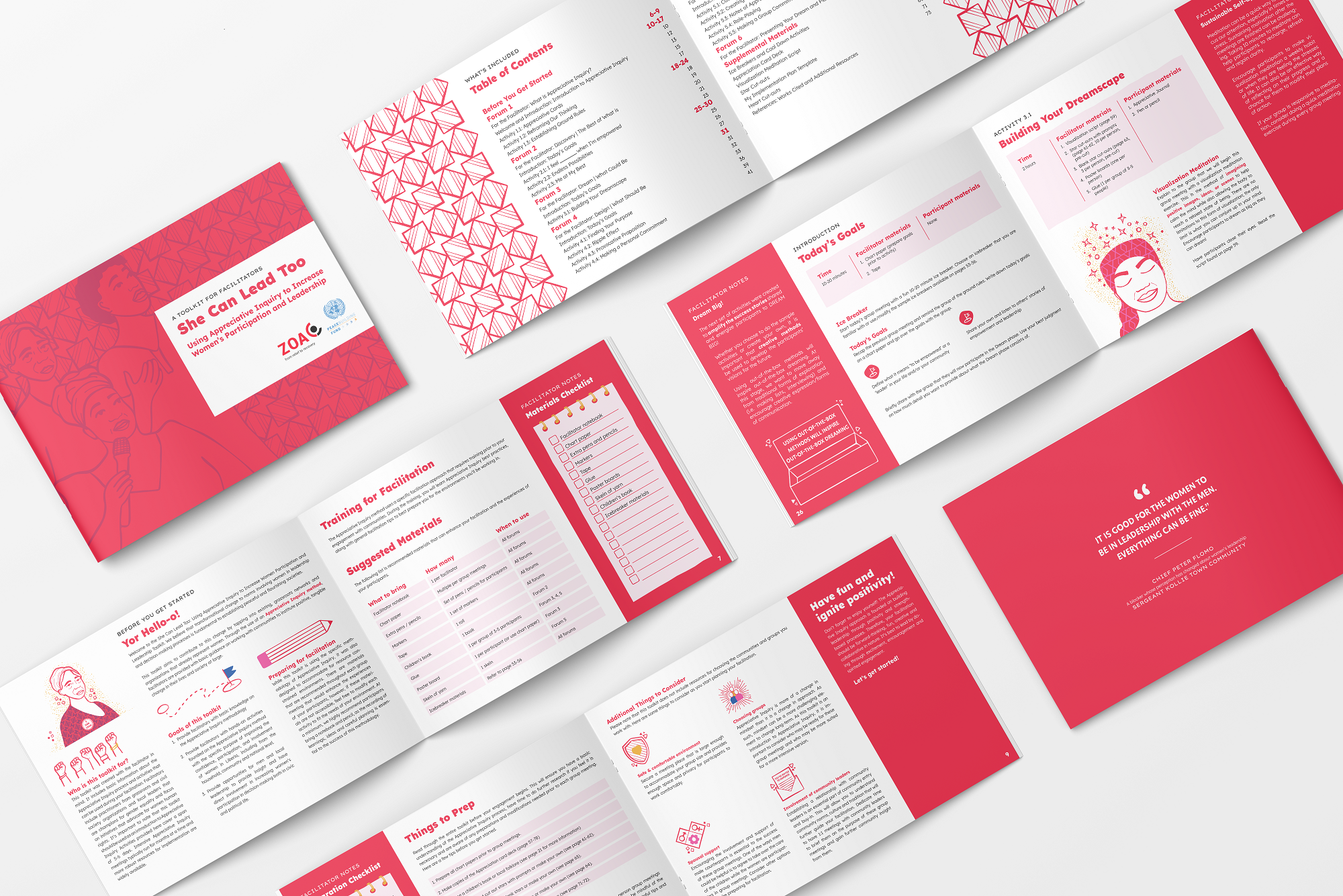 I partnered with ZOA International on the creation of She Can Lead Too - a toolkit made for practitioners interested in strengthening women participation and empowerment in Liberian communities using the Appreciative Inquiry methodology. The toolkit walks users through the basics of the Appreciative Inquiry and includes hands-on activities and resources aimed to empower women to take on leadership positions in their household and community.